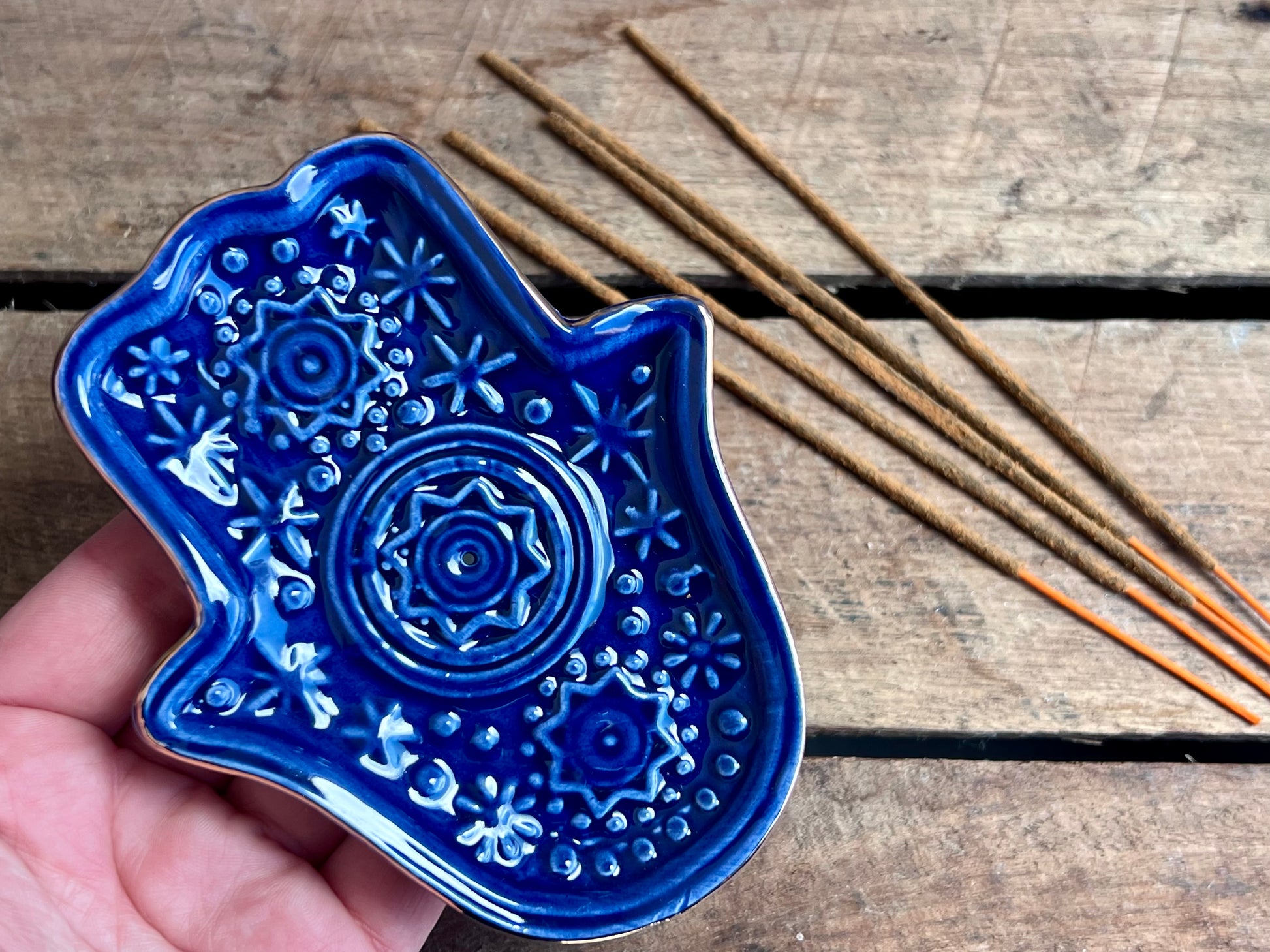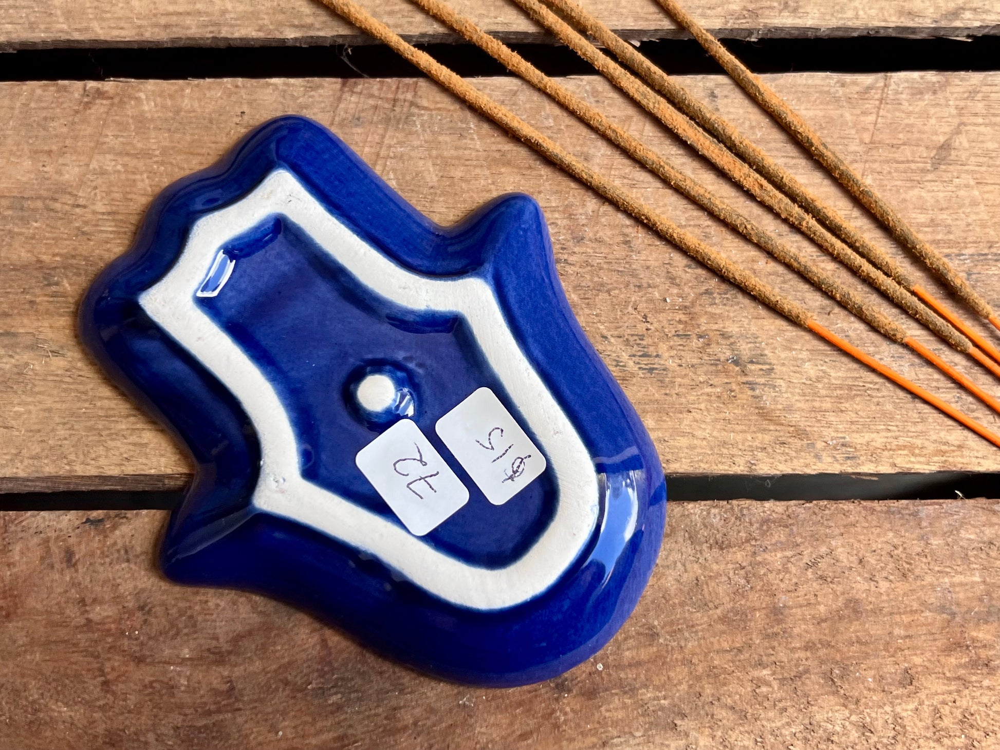 CERAMIC HAMSA INCENSE HOLDER - BLUE