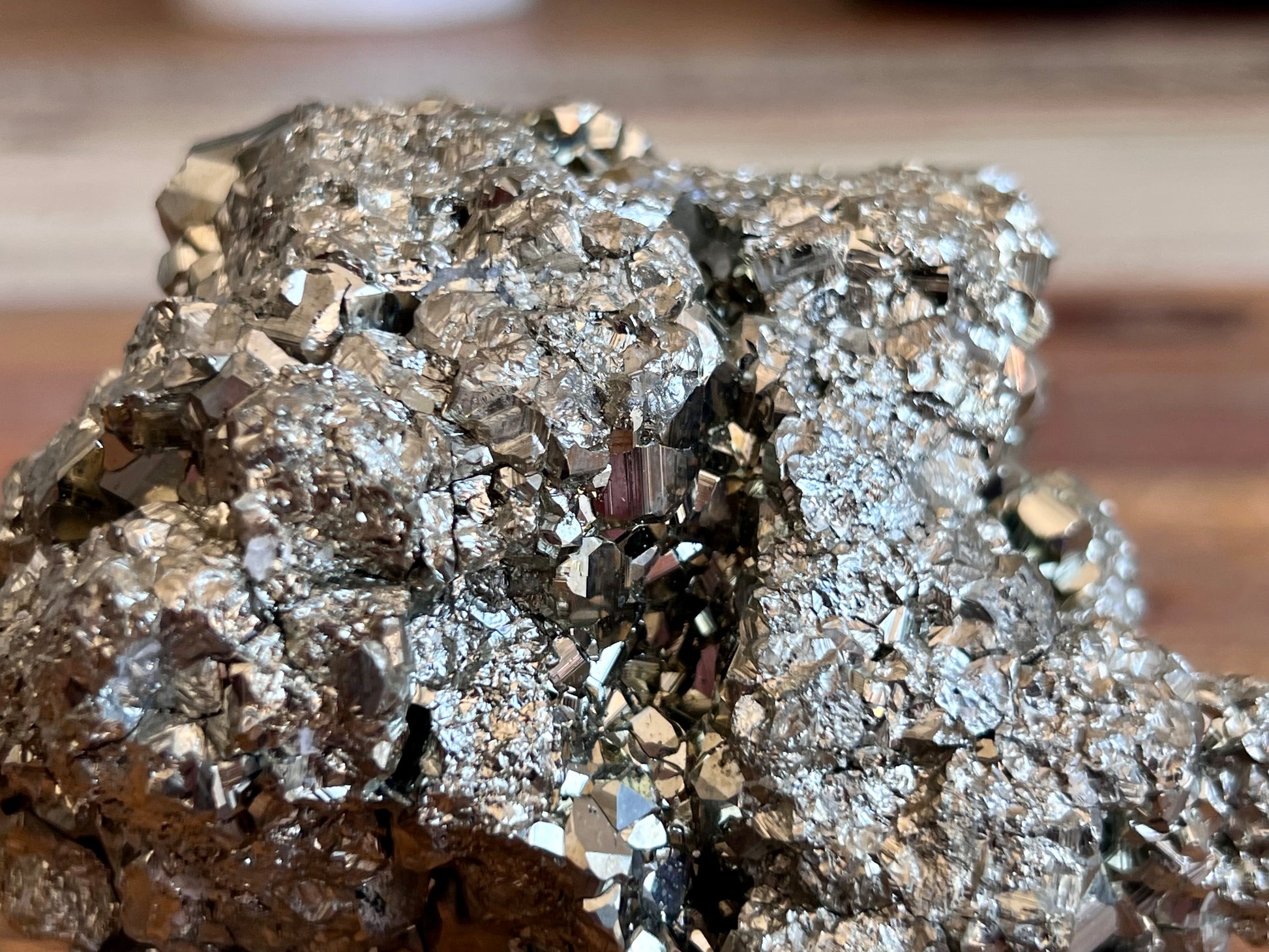 Pyrite is a naturally occurring iron disulfide mineral that back in the gold rush was often mistaken as gold, hence the nickname 'fools gold'.