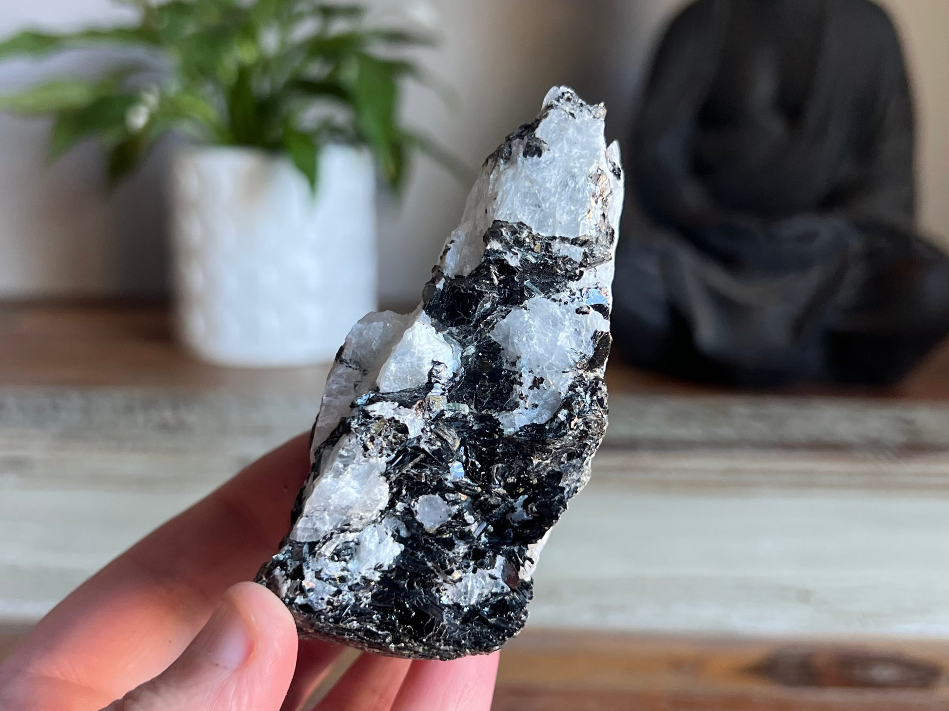 The black found on Rainbow Moonstone is often Black Tourmaline.